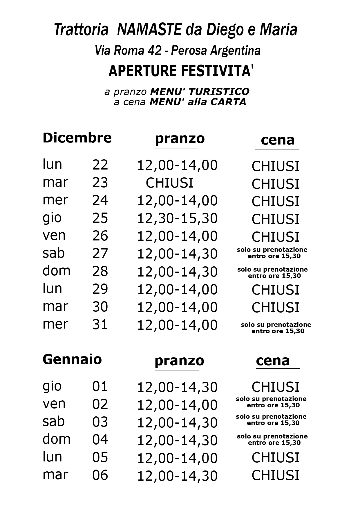 * al sabato e alla domenica a pranzo è consigliata la prenotazione